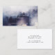 This design offers a serene and ethereal style business card for a meditation instructor, with soft muted watercolor blue violet hues, and trees in a misty forest with clouds, and birds flying. Available in print, as a digital download, or both.