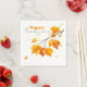 Elevate your Thanksgiving table setting with these elegant, customizable paper napkins. The design features a warm autumnal theme, showcasing a branch adorned with vibrant orange and yellow maple leaves that appear to be gently falling, perfectly capturing the essence of the season. At the centre, the beautifully scripted text “Happy Thanksgiving” is displayed in a flowing, cursive font that exudes celebration and gratitude.