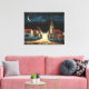Serene Village Under Crescent Moon Canvas Print