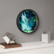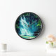 Clock in an illustration of a cascading waterfall in pale blue with white spray, surrounded by boulders and green leaves