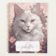 Serene White Cat Planner avec nom et monogramme