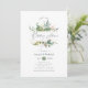 Watercolor floral greenery wedding shower invitation in pastel shades with gold geometric frame customizable to your event specifics.