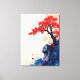 This artwork beautifully portrays a striking red bonsai tree perched on a rugged cliff, surrounded by an abstract blend of vibrant blue and red splatters. The contrast between the delicate foliage and the jagged rock formation symbolizes the harmony between strength and fragility in nature. Inspired by minimalist and Japanese aesthetics, this piece exudes tranquillity and balance, making it a perfect centerpiece for meditation spaces or art enthusiasts who appreciate serene and vibrant designs.