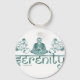 Yoga style green SERENITY in Sanskrit looking font with floral design and meditating Buddhist. By www.YogaGlam.com