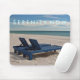 Two empty blue loungechairs on the white sand of Santa Rosa Beach along the Emerald Coast of the Gulf of Mexico