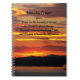 Un carnet de taille personnelle, relié en spirale, qui présente l'image d'un coucher de soleil orange spectaculaire sur l'eau avec les paroles inspirantes de la prière de sérénité. Utilisez comme journal ou pour garder des notes importantes.