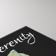 Stunning white rosebud with lingering raindrops against a black background with the inspirational word Serenity. Flower photography by Susan.