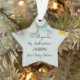 Serez-vous ma Godmère star de Noël suspendu ornement d'arbre avec des articles pour bébé. Ajoutez le nom du parrain et du bébé. Il y a l'année de Noël en arrière.