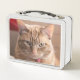 This is a standard metal lunchbox that appears to work just fine. We designed this box ourselves with an uploaded photo and custom text on the front and back. It looks absolutely beautiful except the front of the lunchbox is not centered like it shows in the photo. The print borders don't align with the inset flat part of the box where the preview photo online showed it perfectly centered in there. The back looks nice and centered though.