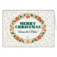 Une carte de Noël festive "Across the Miles", avec une couronne de Noël de Holly, Ivy, Poinsettias, Fir Cones, Roses de Noël et un arc rouge assorti, dessinée à effet or, avec des flocons de neige à effet or sur un arrière - plan blanc. Une carte frontale personnalisée de cette série est également disponible.