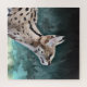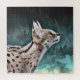 An African Serval cat , with a curious attitude, on a grunge background with shades of green.