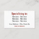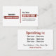 Avez-vous une entreprise de services de peinture et recherchez-vous de nouveaux cartes de visite? Essayez ensuite ces cartes de visite de service de peinture rouge recto verso pour votre entreprise. Ces cartes de visite de peinture sont entièrement personnalisables. Pour personnaliser votre image de marque, sous "personnaliser ce modèle" cliquez sur "modifier à l'aide de l'outil de conception" bouton. Utilisez l'outil de conception pour modifier les couleurs, la taille de police, le placement et les couleurs arrière - plans. Ce carte de visite fait partie d'un ensemble de panneaux publicitaires et de produits promotionnels correspondants pour votre service de peinture. Les rabais commencent lorsque vous commandez 2 packs de 100 ou plus.