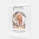Floral Forever In our Heart Signe funéraire avec photo | Honorer la mémoire de votre bien-aimé avec cet élégant panneau acrylique d'accueil funéraire avec un bel arrangement floral et une photo personnalisée. Le design transparent aux tons doux et neutres crée un hommage intemporel pour les services commémoratifs, les célébrations de la vie ou les funérailles. Personnalisez avec le nom et les dates pour un souvenir vraiment significatif.