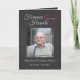 Service Funeral Obituary with Photo Thank You Card. A card sympathy with a photograph of the person being remembered, the sympathy title "Forever in our Hearts", their name, and dates of birth/death. Insert a photo, write an obituary for the deceased, and a funeral service plan. You can also thank on behalf of the family those who came to see the deceased off on his final journey.