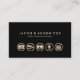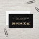 Ce carte de visite de services de production vidéo présente un arrière - plan noir à jet. Cinq icônes d'or liées à la production vidéo et film apparaissent sur la moitié inférieure de la carte, avec votre nom d'entreprise et slogan ou texte apparaissant en gras sur la moitié supérieure. Vos coordonnées apparaissent au verso de la carte. Les petites icônes créent un look professionnel très impressionnant.