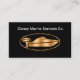 Services maritimes classiques cartes de visite personnalisés modernes conçus avec un emblème de bateau à vitesse noire et or cool pour les entreprises qui font la réparation de bateaux, vendent des hors-bord ou des fournitures maritimes.