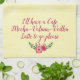 Lit la serviette de cuisine jaune doux J'aurai un Cafe-Mocha-Valium-Vodka Latte à aller s'il vous plaît en écriture rose. Ci-dessous, un joli spray de fleurs roses.