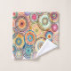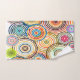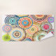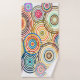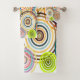 Ce set de serviettes a un design Bauhaus de cercles concentriques de plusieurs couleurs se chevauchant.