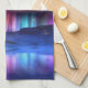 Les aurores boréales brillent au-dessus d'un paysage hivernal enneigé. Des arbres roses, violets, bleus et verts illuminent les champs enneigés et se reflètent depuis un lac gelé. Au bord de l'eau se trouve un chalet avec une lumière chaude qui s'écoule de ses fenêtres et de la fumée venant de la cheminée - un refuge confortable du froid étincelant.