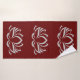 Serviette de bain : Trois grandes fleurs de lotus argentés sur un arrière - plan rouge bordeaux.