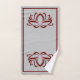 Serviette à main : Deux fleurs de lotus rouge bordeaux avec un contour rouge bordeaux sur un arrière - plan argenté.