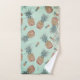 Sur cet ensemble élégant de serviettes est une petite toile verte avec une bordure argentée sur les côtés, avec des ananas chatoyants. Vibes de glam amusantes.