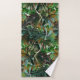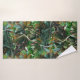 Photo de billets verts dans la forêt tropicale. Au premier plan, un immense Croton arboré de grands feuilles décoratifs lumineux.