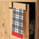 Un motif plaid original en noir et blanc d'inspiration cristalline avec de fines rayures et une bordure rouge vif à chaque extrémité.