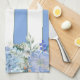Un joli design floral aquarelle sur une serviette de cuisine en latte rayé bleu et blanc - utile et beau!