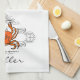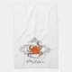 Serviette Cuisine Crabe Flourish personnalisée - Customisez avec votre initiale et votre nom. Le lettrage en gris foncé et les allumettes fleurissent. Le crabe est rouge orange.