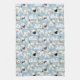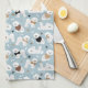 De mignons chiens de bichon font frissonner les chandails et les arcs avec des os de chien épars et des empreintes de pattes sur un bleu clair arrière - plan serviettes de cuisine.