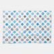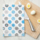 Une serviette de cuisine parfaite pour la saison hivernale. Motif à pois d'hiver dans les tons bleu et gris sur un arrière - plan blanc. Des points, des tourbillons, des flocons de neige, des anneaux et des étoiles.