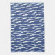 Serviette de cuisine bleue et blanche avec motif graphique illustratif des vagues. Motif inspiré des motifs japonais traditionnels et des tissus d'indigo.