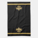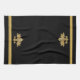 Serviette de cuisine de 16" x 24" avec une image, aux deux extrémités, d'une fleur de lis d'or antique sur noir aux bordures d'or. Voir serviettes assorties, serviettes en papier, set de table en tissu, set de table en papier et dessous de verre. Voir toute la collection Cancan Kitchen Towel dans le document FOOD/BEV| Section Linens.