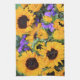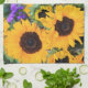 Des tournesols d'or sont placés par des pourpres et des verts pour créer une belle et gaie serviette de cuisine !