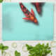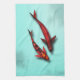 Comportant une paire avec éclat de couleur poissons rouges et oranges de Koi, flottant serein au-dessus d'un arrière - plan bleu vert pâle.