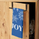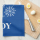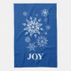 Cette serviette de cuisine est montrée avec un imprimé de Noël classique d'un gros flocons de neige avec le texte de JOY. Couleur Sapphire Bleu Personnaliser cet article ou acheter comme indiqué.