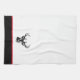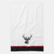 La serviette de cuisine est présentée dans un imprimé d'art du wapiti rustique. Accent rouge Customisez cet objet ou achetez tel quel. Image sous licence