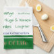 Cette serviette de cuisine est en jade vert et blanc avec accent chameau et rayures d'accent. Mots de "Partage, bénédictions, bonne nourriture, gentillesse, embrassades et baisers, générosité, sourires, rire, amitié, bonnes conversations", et, au bas de la serviette "le pépite de la vie". Sur un arrière - plan blanc. Customisez cet objet ou achetez tel que conçu.