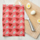Serviette de cuisine avec un motif rétro de fraises rouges et de fleurs de fraises blanches sur un arrière - plan rose. Cliquez sur Customiser pour ajouter votre nom ou votre message, modifier les couleurs des arrière - plans et plus encore, même enregistrer votre conception pour plus tard.