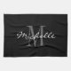 Serviette de cuisine noire et blanche fascinante de monogramme. Modèle élégant de typographie de manuscrit avec les lettres initiales nommées décorées d'un monogramme. Accessoire mignon de cuisine/cuisson de BBQ pour les hommes et des femmes. Conception élégante.