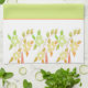 Serviette de cuisine orangée et verte à motifs flo