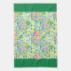 Une très jolie serviette de cuisine ou de thé, avec un motif de primroses, jaunes et bleues, d'aquarelle peinte à la main par Judy Adamson. La bordure de cette serviette est en Forest Green mais d'autres couleurs sont disponibles.