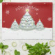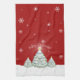 Ajoutez une touche de vacances à votre cuisine avec cette serviette de cuisine Red Snowy Christmas Tree. Les serviettes sont décorées d'un trio d'arbres de Noël recouverts de neige contre un arrière - plan rouge et de flocons de neige tombants. Autres cadeaux et objets de vacances disponibles avec ce design aussi.