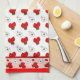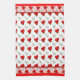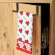 Serviette de cuisine rétro avec un motif de fraises rouges et de fleurs de fraises aux bordures roses et rouges.