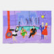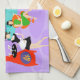 Cette Serviette de cuisine Retro Tropical Cocktail Party est enivrante dans ses détails. Le dessin animé présente le type de cocktail extrêmement sophistiqué que l'on ne voit normalement que dans les films des années 1960. Un salon moderne du milieu du siècle est rempli de fêtards qui apprécient la décoration chic et violette. Une jolie femme en uniforme de domestique française porte un plateau de martinis. Elle se tient à côté d'une cheminée rouge à cônes avec un feu rugissant. Au centre de la pièce, un beau couple s'installe dans des chaises à oeufs d'orange. La femme porte une robe verte et brillante. L'homme porte un costume noir avec une cravate rouge. Ils tiennent chacun un martini. Un autre couple devient cosy sous un lustre suspendu, jaune, Spoutnik. Le distingué homme aux cheveux blancs porte un costume bleu, une chemise bleu clair et une cravate rouge. Il tient aussi un martini dans chaque main, montrant au monde que ses jours de fête sont loin d'être terminés. Son compagnon est une blonde en forme dans une robe rouge étonnante. Derrière cette scène, on peut voir à travers des murs en verre du sol au plafond. La scène extérieure dispose d'une piscine ronde et turquoise. On peut voir la silhouette violette d'une femme plongeant ses jambes dans l'eau. Entre les murs violets en pierre, il y a des silhouettes de palmiers. Les silhouettes de danses et de fêtards parlants sont également visibles. S'il y a une chose que cela prouve, c'est que, tandis que les gens qui vivent dans des maisons en verre ne devraient pas jeter de pierres, ils devraient certainement jeter des fêtes !