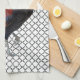 Serviette de cuisine à grille colorée, avec une photo d'un Rooster de Key West (par ©sjasis) contre un arrière - plan de quatrefoil.