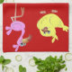 Serviette de cuisine rouge avec le poussin rose de