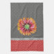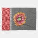 Cette aquarelle de ma fleur de couverture indienne orange et rose est stupéfiante contre le arrière - plan gris pointillé. La bordure rouge et saumon du chevron est si moderne et fraîche. Je vois ça dans une cuisine en acier inoxydable.