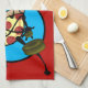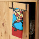 Drôle Graphic Ninja pizza illustration rouge verticale serviette de cuisine. La couleur Arrière - plan peut être customisée.